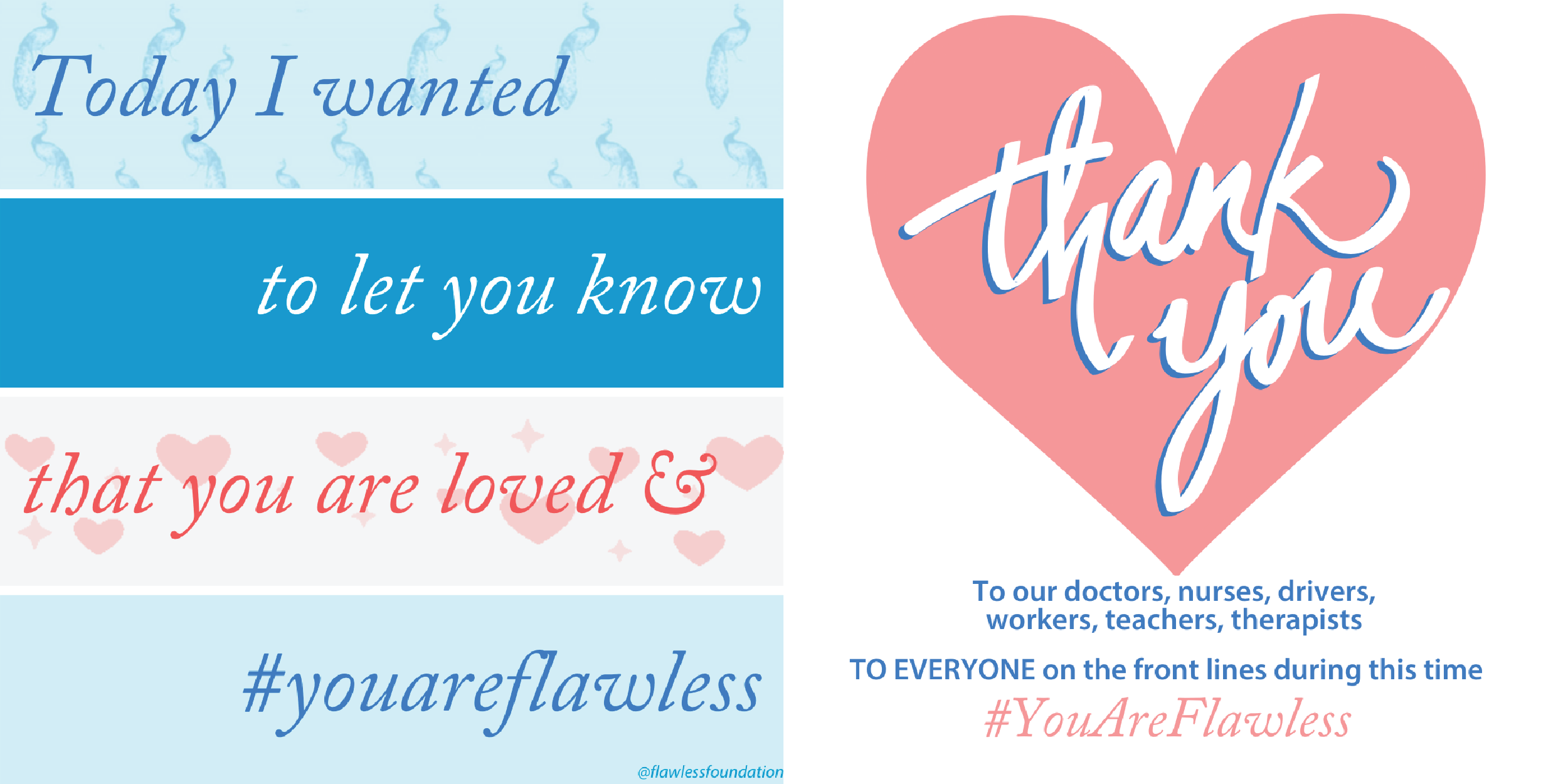 During this time of isolation, we are encouraging everyone to SPREAD THE FLAWLESS LOVE and let your loved ones know just how much you care. Please download and send the following graphics to older adults or anyone in your life and let them know you’re thinking of them! We also have a flawless gratitude “thank you” to send to people who are working on the front lines.
